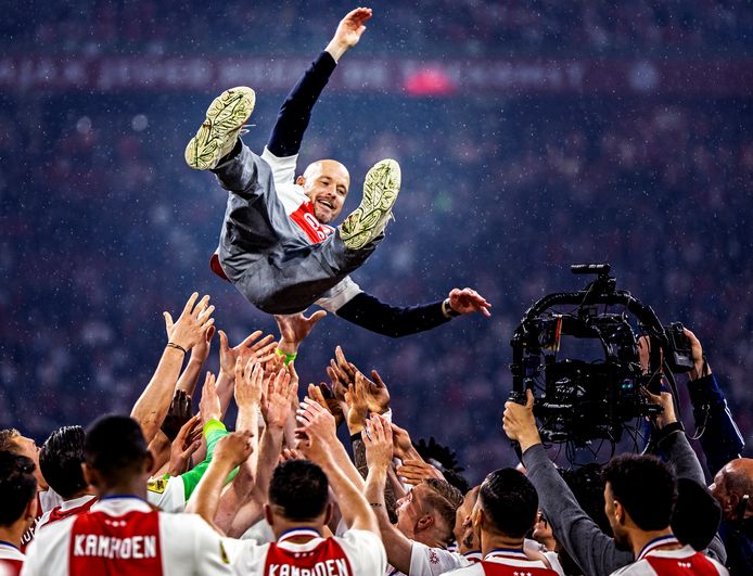 10 Hag vertrekt na het seizoen naar Manchester United, waar hij aan een succesvol team moet gaan bouwen. ,,Of ik ooit terugkom? Dat ligt aan Ajax en aan mij", antwoordde Ten Hag. ,,Ik weet het niet, maar ik ben van de club gaan houden. Ik heb hier echt met heel veel plezier gewerkt."